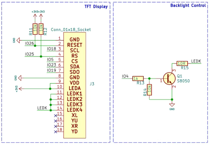 - Display and Storage: The 2.4 - inch TFT display with an ILI9341 driver chip is connected to the ESP32 via SPI, supporting a speed of up to 65MHz. An S8050 transistor is used for backlight control, and the brightness can be adjusted using a PWM signal. The display is connected to the ESP32's VSPI interface, while the Micro SD slot is connected to the HSPI interface, enabling simultaneous access to both.